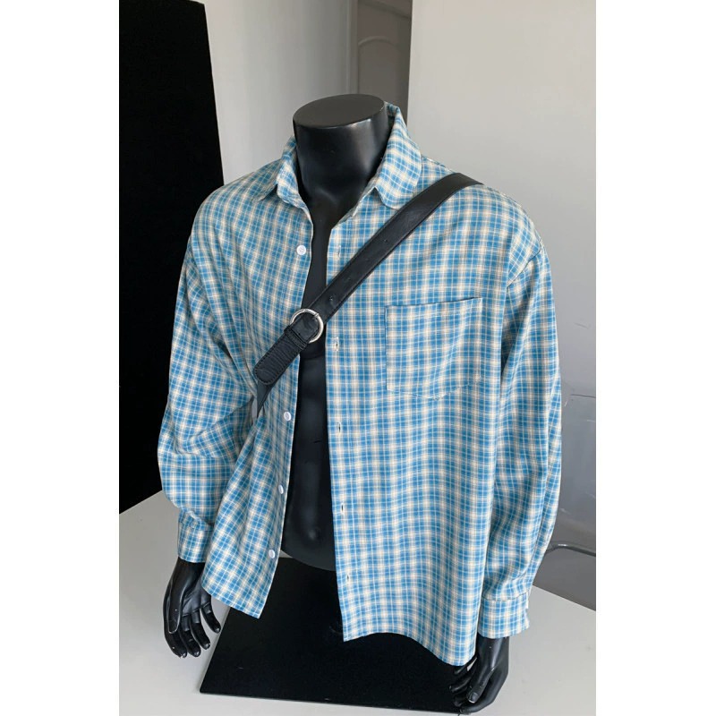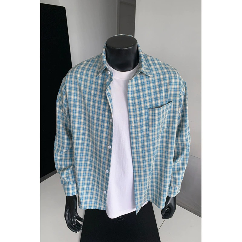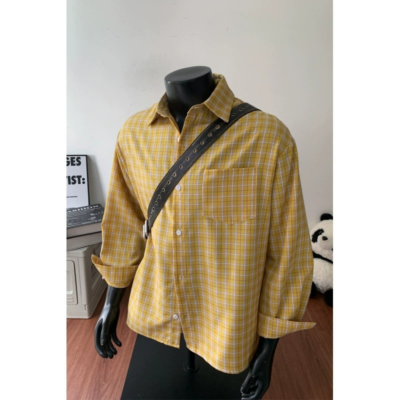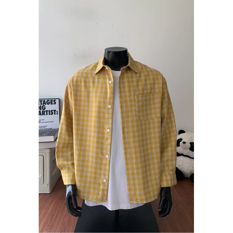 ZITY Men’s Autumn Vintage Plaid Long Sleeve Loose Fit Casual Shirt–DUMLT06594