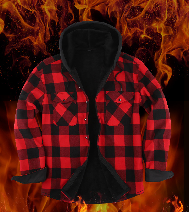 ZITY Men's Double Pockets Plaid Hoodie Jacket-DUMJA05356